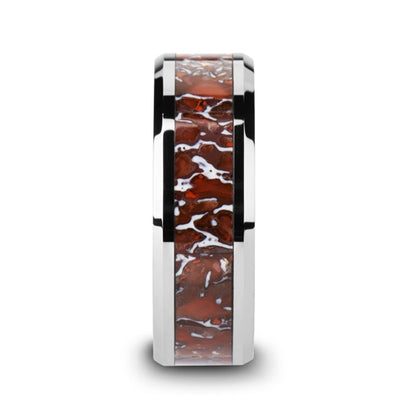 - Material: Tungsten Carbide & Genuine Red Dinosaur Bone Fossil
