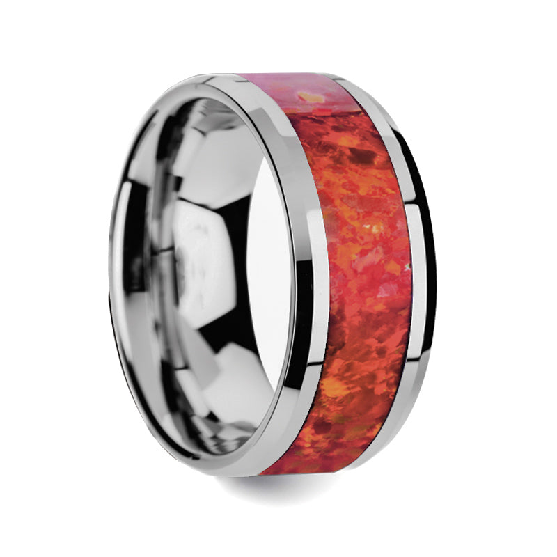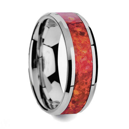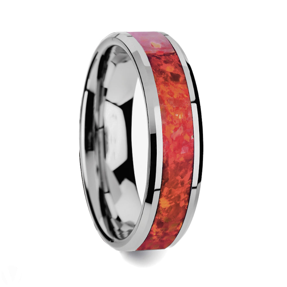 Red Opal Inlay Tungsten Couple's Matching Wedding Band Set