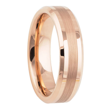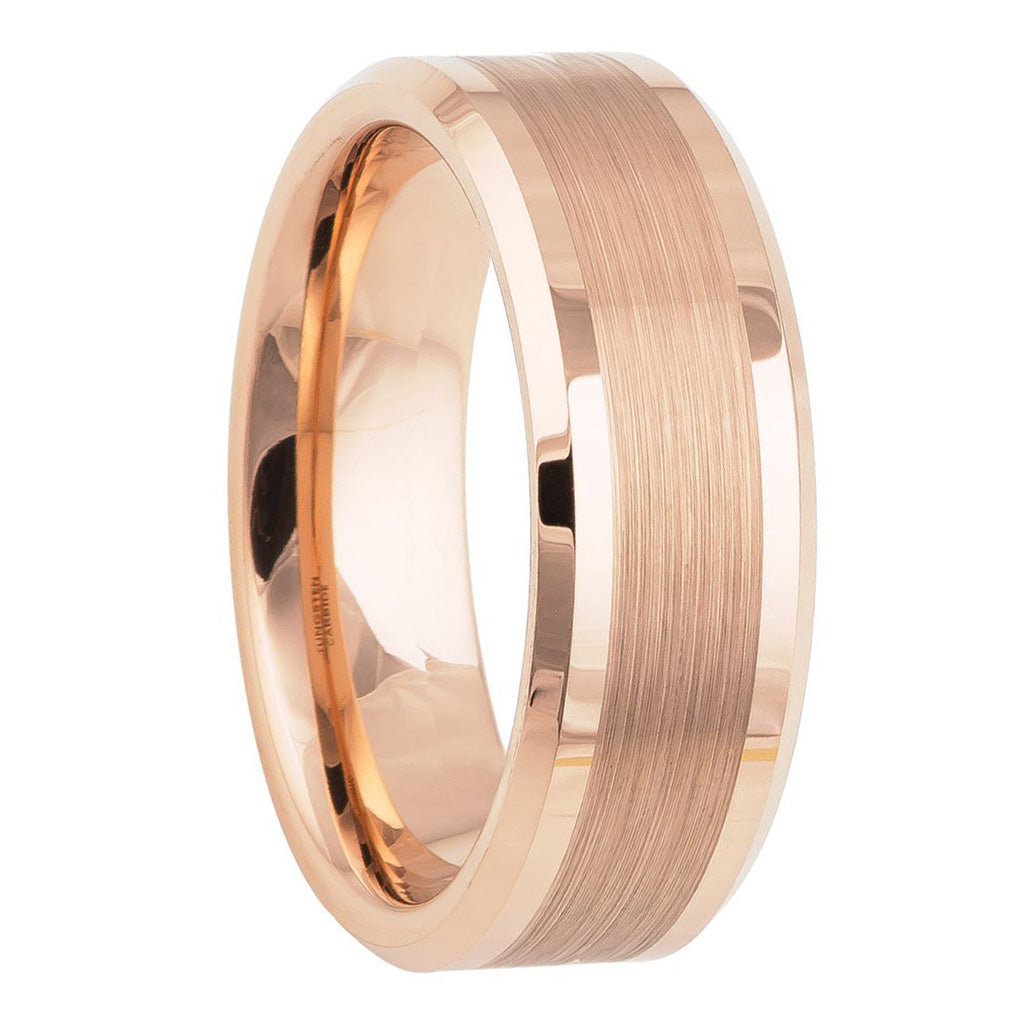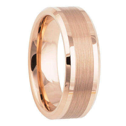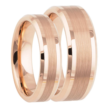 Rose Gold Brushed Center Tungsten Couple's Matching Wedding Band Set