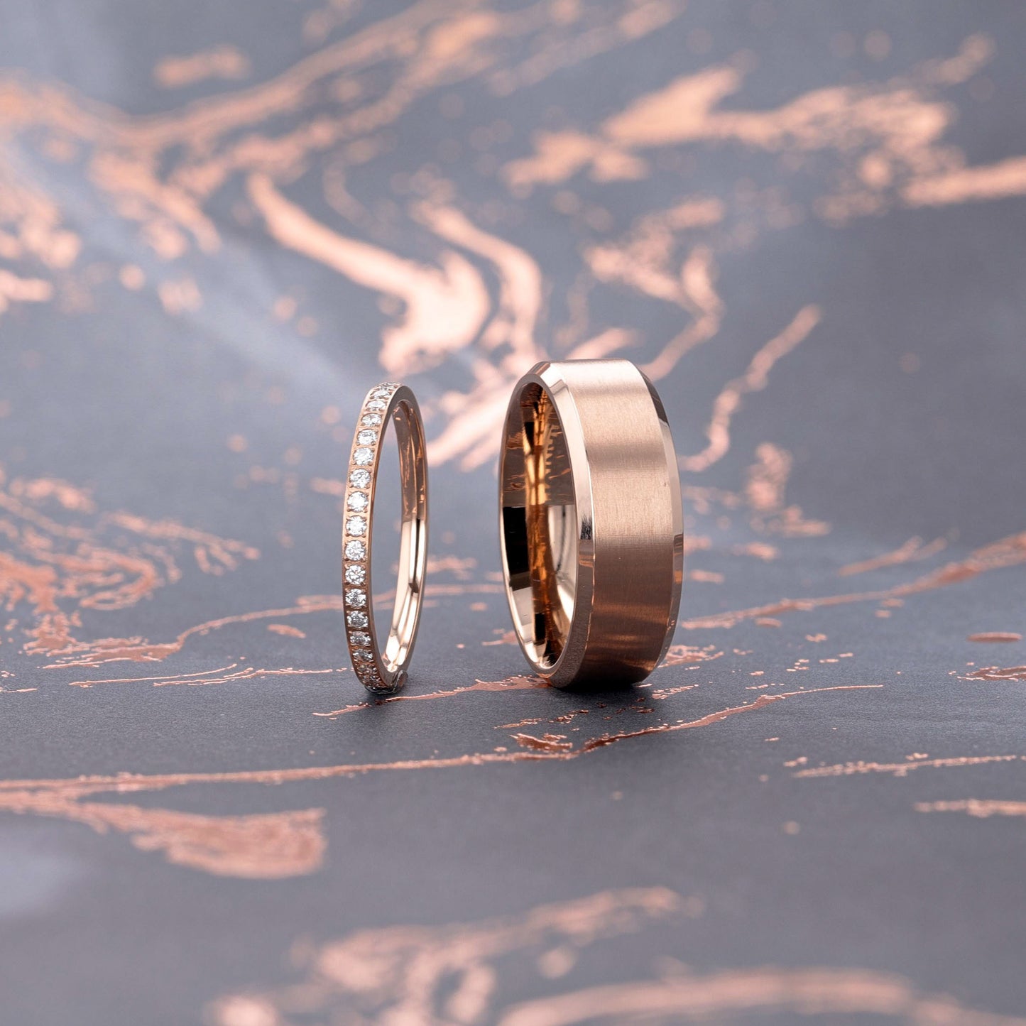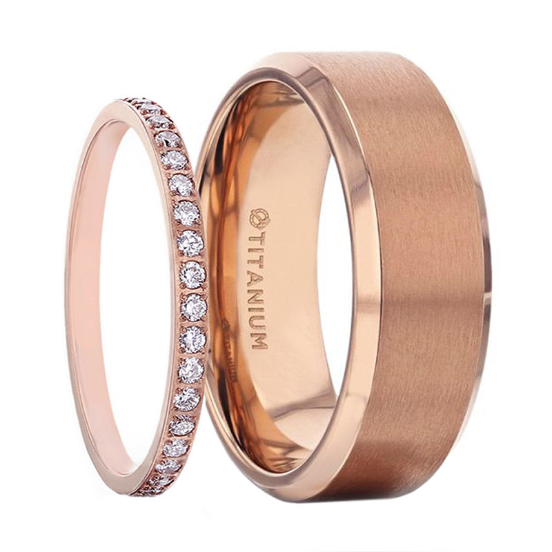 Rose Gold Titanium Couple's Matching Wedding Band Set