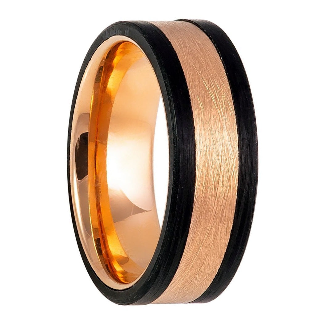Wire Brushed Rose Gold Tungsten Men's Wedding Band with Black Edges