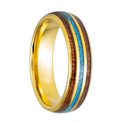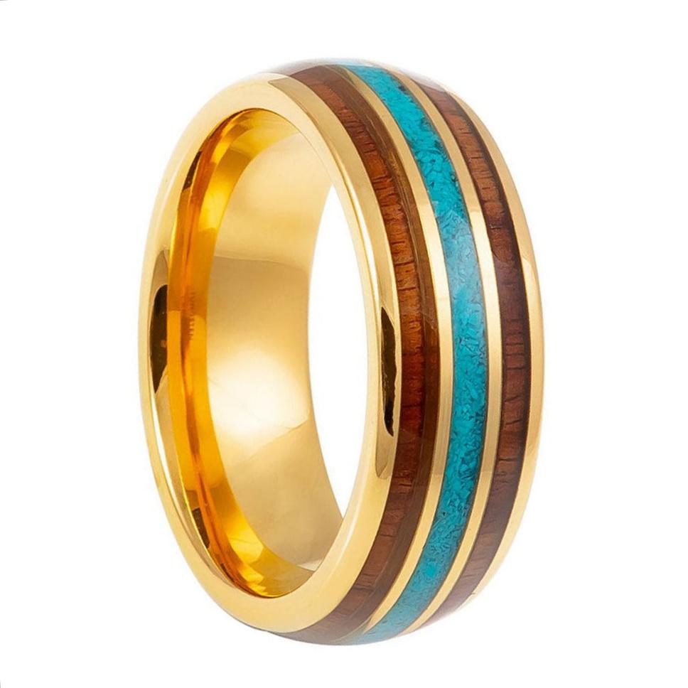 Rosewood & Crushed Turquoise Inlaid Gold Tungsten Women's Wedding Band