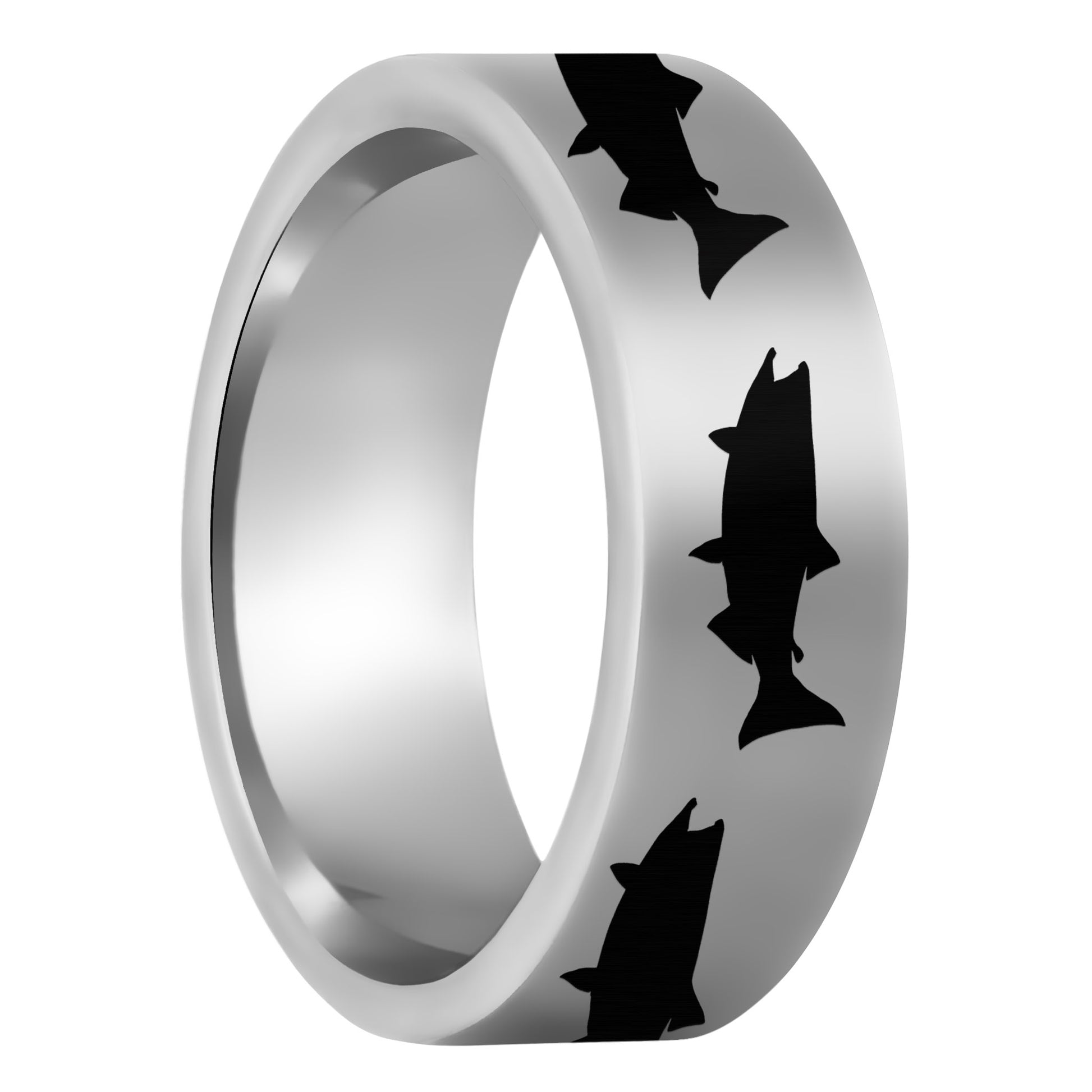 Within ancient lore, there are many hidden stories, not the least of which is the sassy Salmon who gains wisdom, creativity and future-sight through eating hazelnuts found at a sacred well. Through this story and many like it we've formed a tradition of Salmon as a spirit animal to those who wish for determination and wisdom in the paths that they have chosen. You've chosen love as a course of action and your sights are set on one beauty, one person whose love has conquered any fear you might have of the future. Let this intricately laser engraved tungsten wedding band represent the bond you share from now until forever. It is made to last a lifetime, is low-maintenance, and has excellent scratch resistance.
