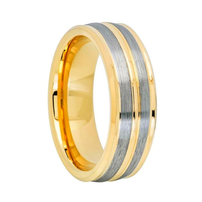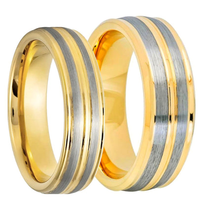 Silver Grooved Gold Tungsten Couple's Matching Wedding Band Set