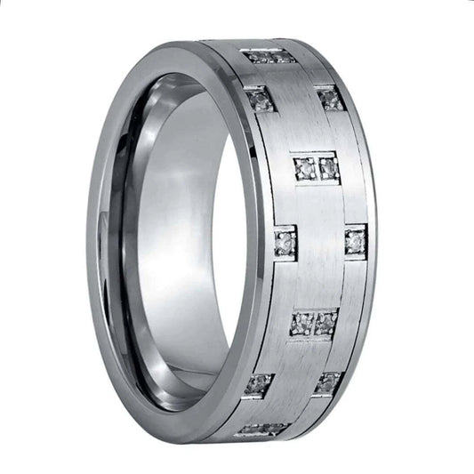 Square Pattern Cubic Zirconia Tungsten Men's Wedding Band