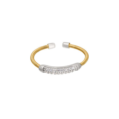 Ditch the expensive bling and try our flexible cable ring with simulated diamonds. Get the same stylish look without a huge price tag. You'll love the unique design that sets it apart from other rings. The flexible cable band allows for easy on and off, while the simulated diamond accents sparkle and shine just like the real deal. It's perfect for anyone looking to add a touch of elegance to their everyday wardrobe or for those special occasions when you want to impress. The high-quality materials used in this ring ensure that it will last for years to come, so you don't have to worry about it losing its shine. Plus, it makes an excellent gift for your loved ones who deserve the very best. You won't be disappointed with this beautiful and affordable alternative to traditional diamond rings. Grab yours today and add some sparkle to your life.
