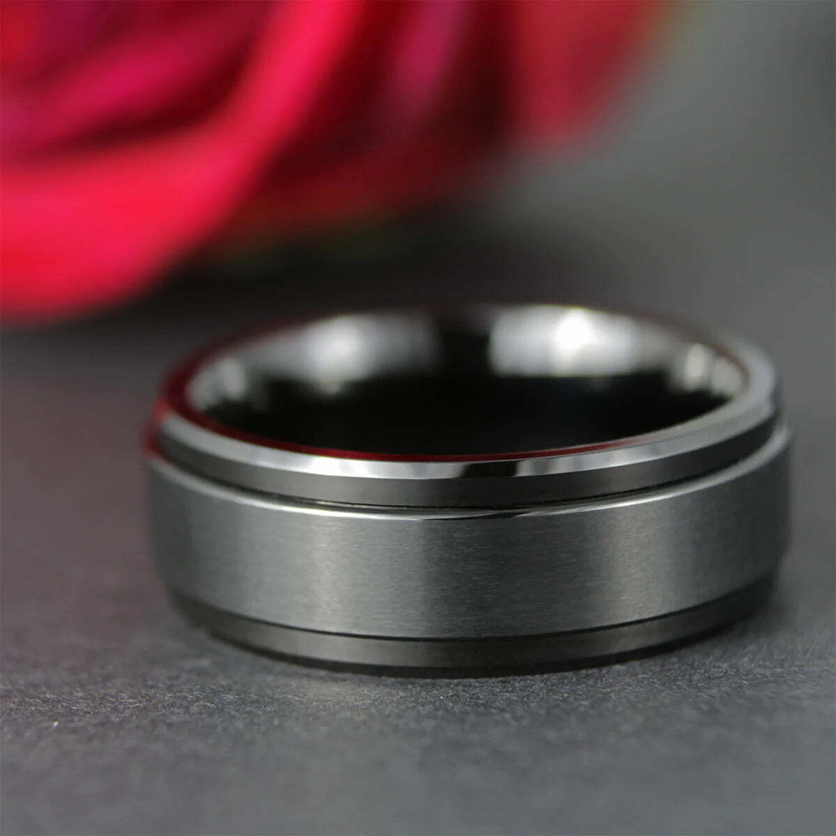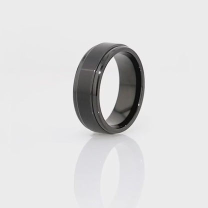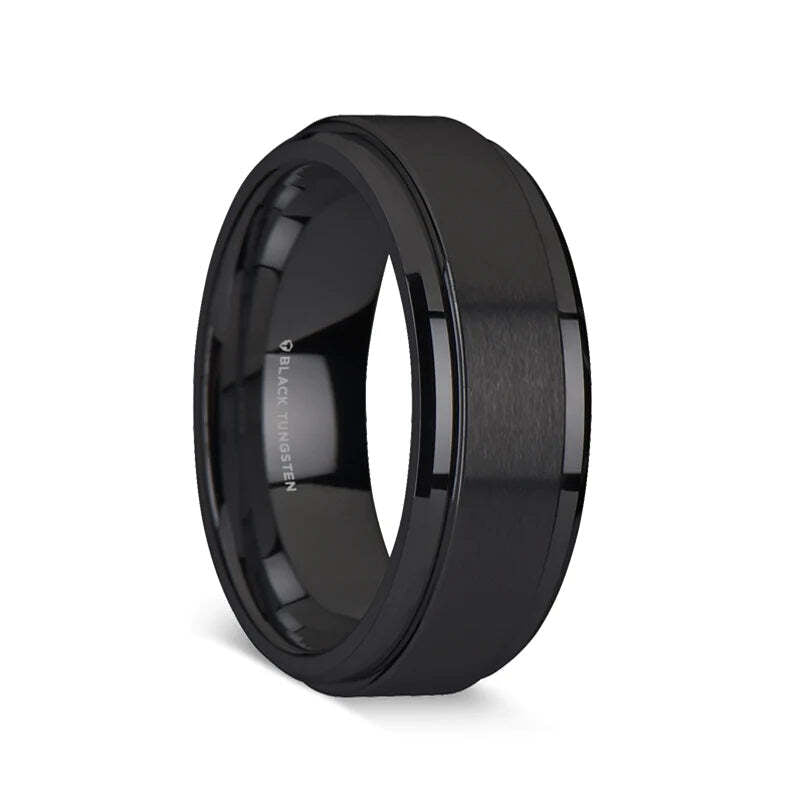 Spinner Black Tungsten Couple's Matching Wedding Band Set Details