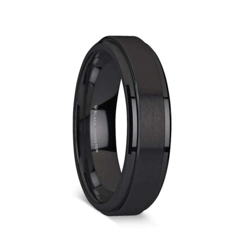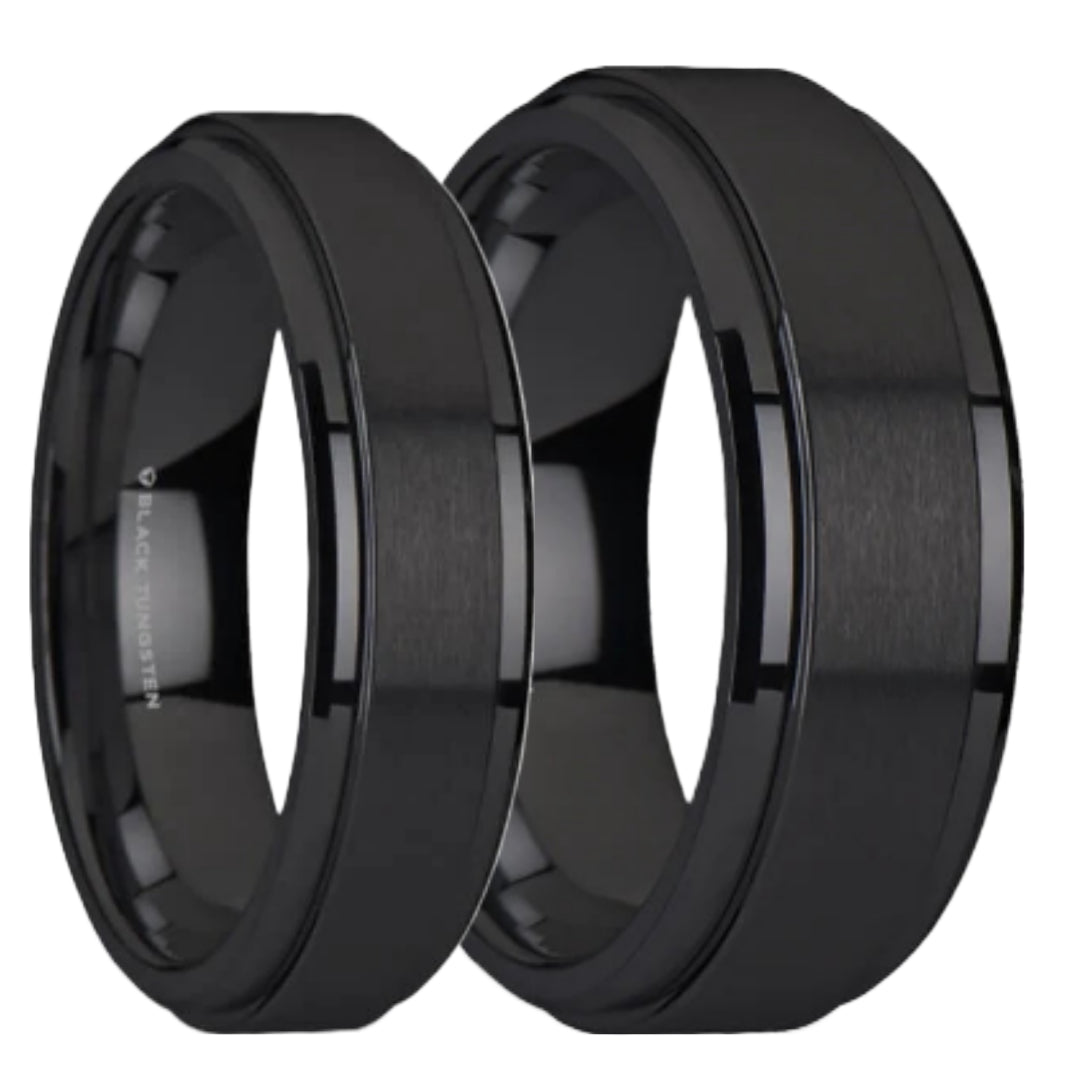 Matte Black Tungsten Couple's Matching Wedding Band Set