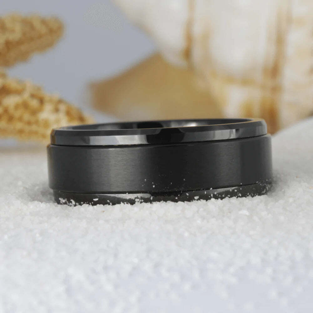 Spinner Black Tungsten Couple's Matching Wedding Band Set