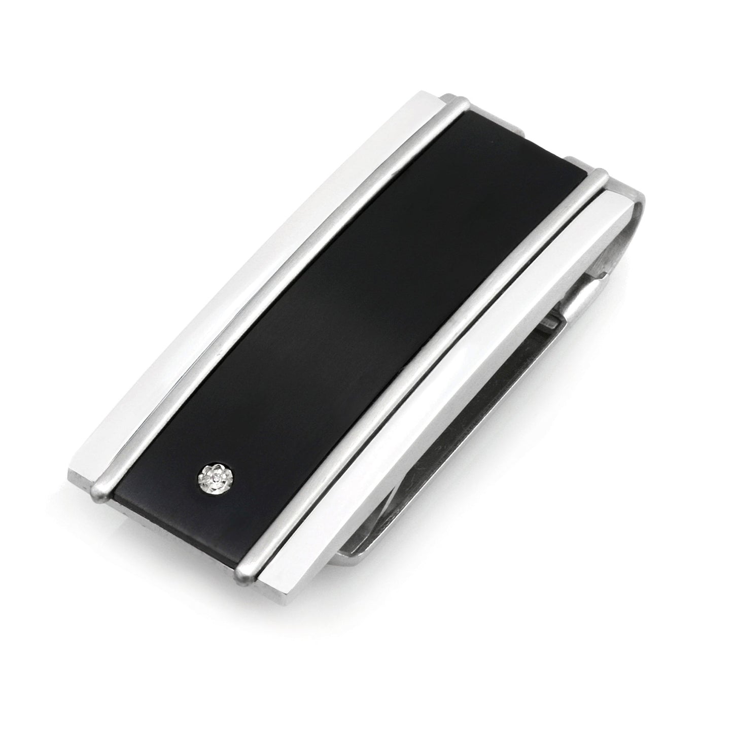 Stainless Steel & Black Titanium Money Clip with Diamond