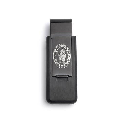 Stainless Steel Flip Money Clip with St. Christopher