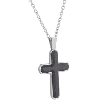 Stainless Steel Forged Carbon Cross Necklace