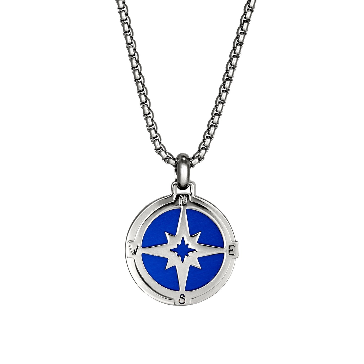 Blue & Silver Stainless Steel Nautical Compass Men's Necklace