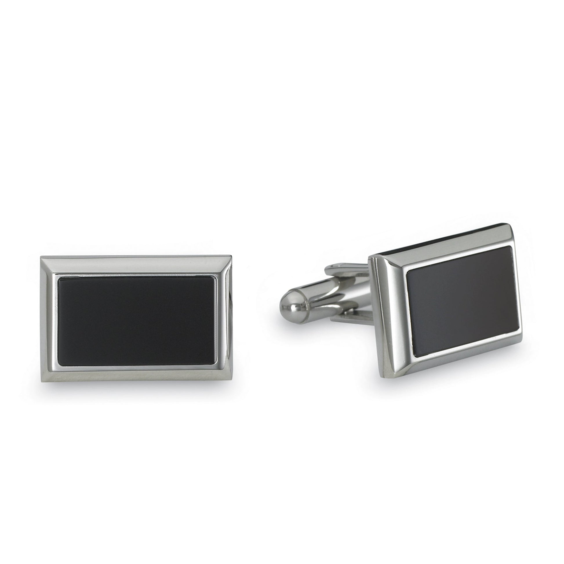 Stainless Steel Rectangle Black Epoxy Accent Cufflinks