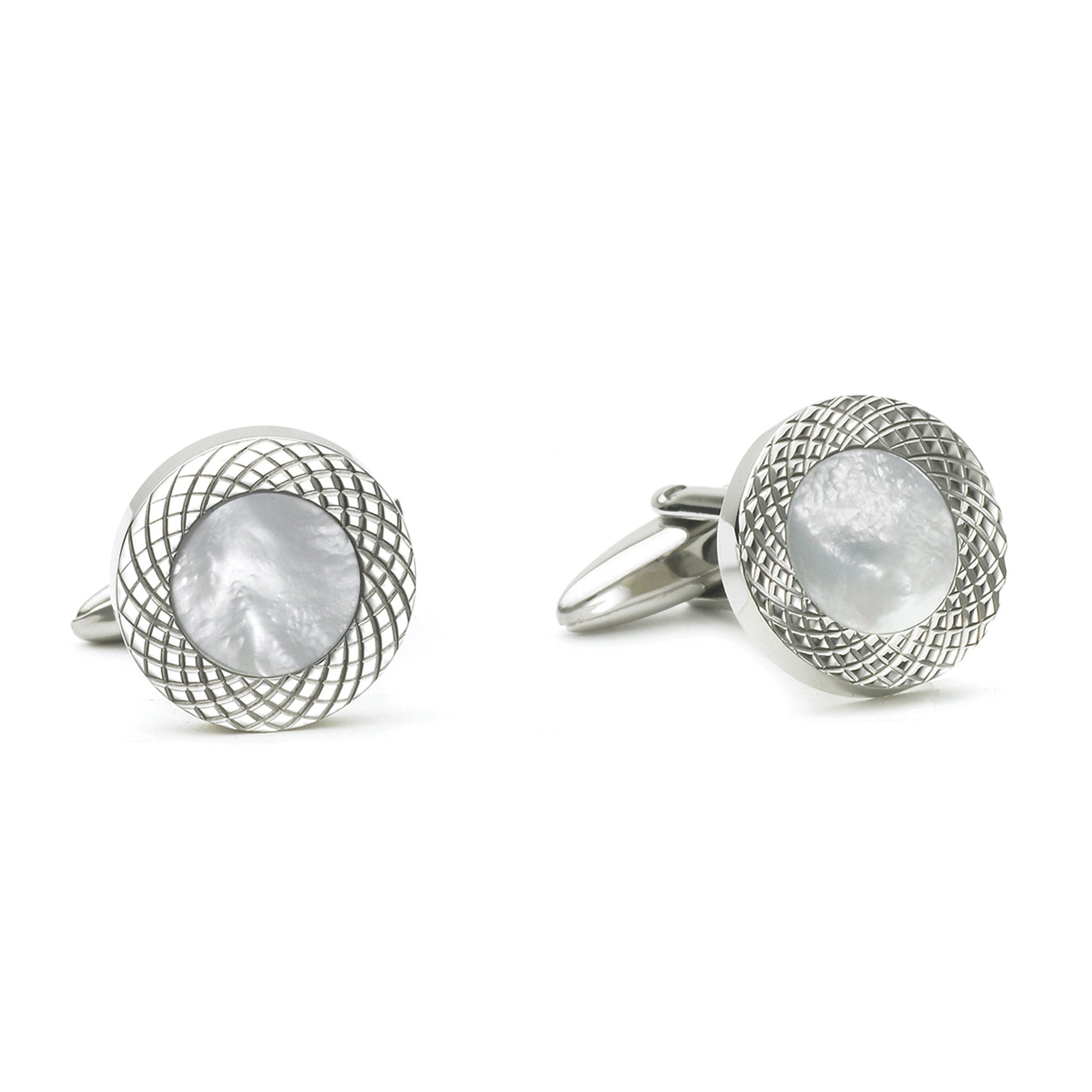 Stainless Steel Round Cufflinks with Mother of Pearl