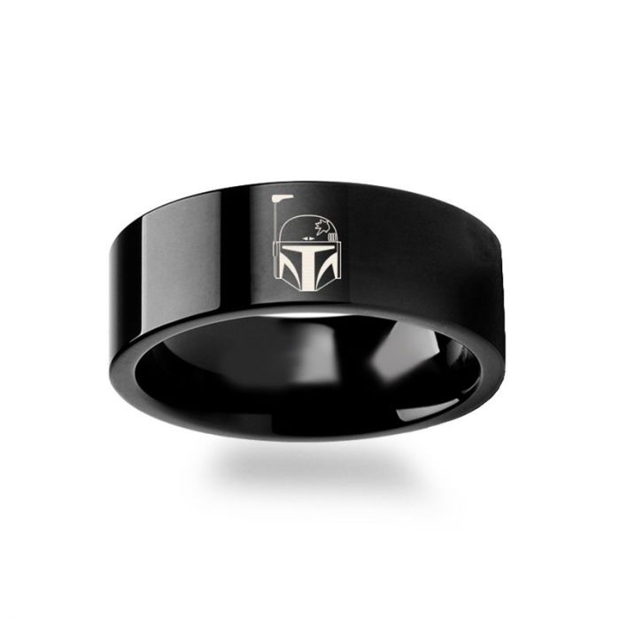 Star Wars Boba Fett Helmet Black Tungsten Wedding Band