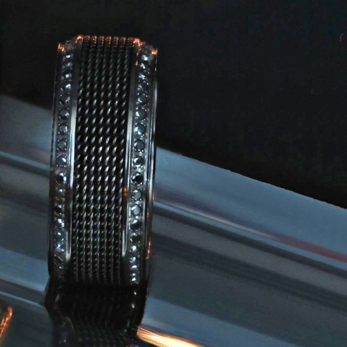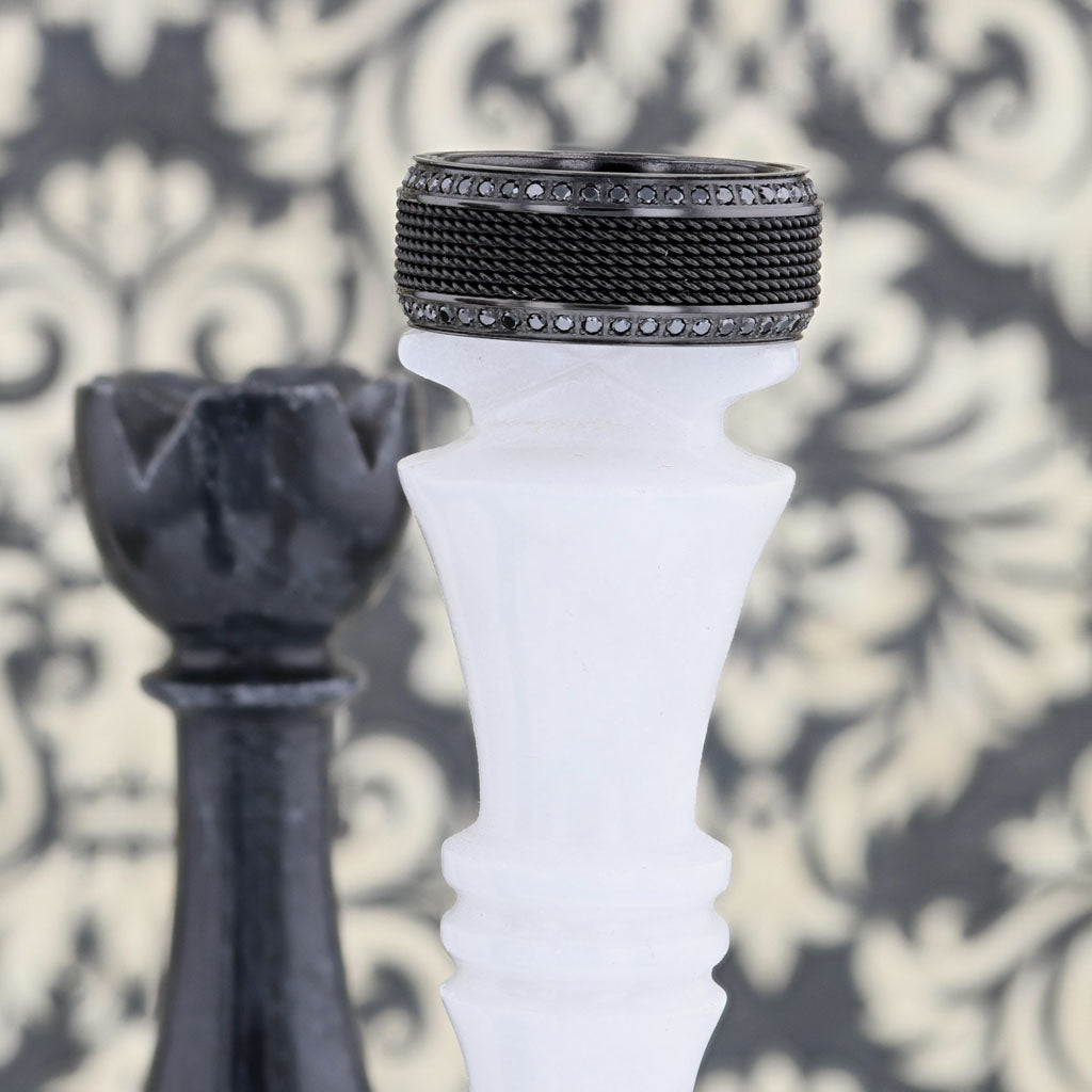 Steel Chain Black Titanium Men's Wedding Band with Black Diamonds