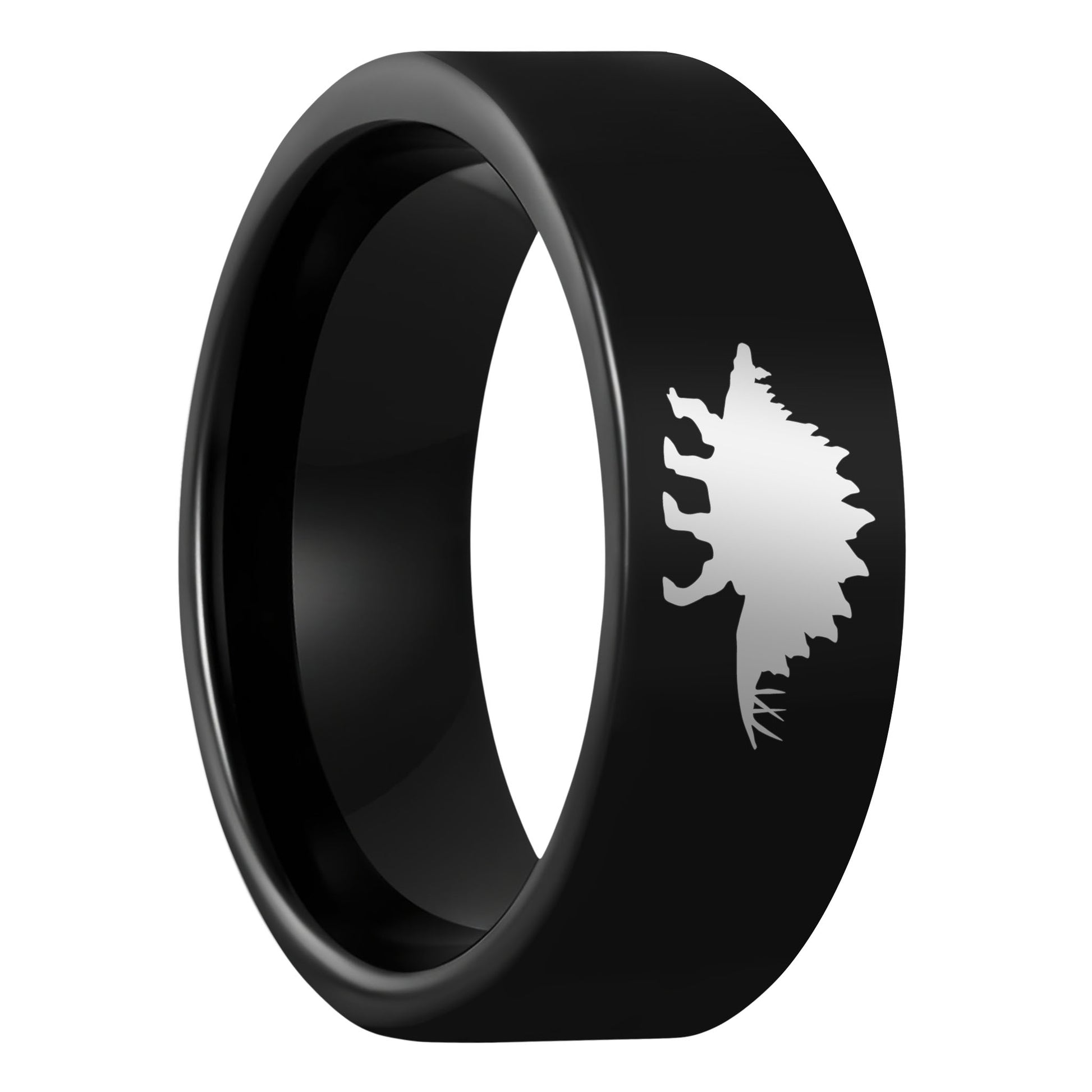 Stegosaurus Dinosaur Black Tungsten Men's Wedding Band
