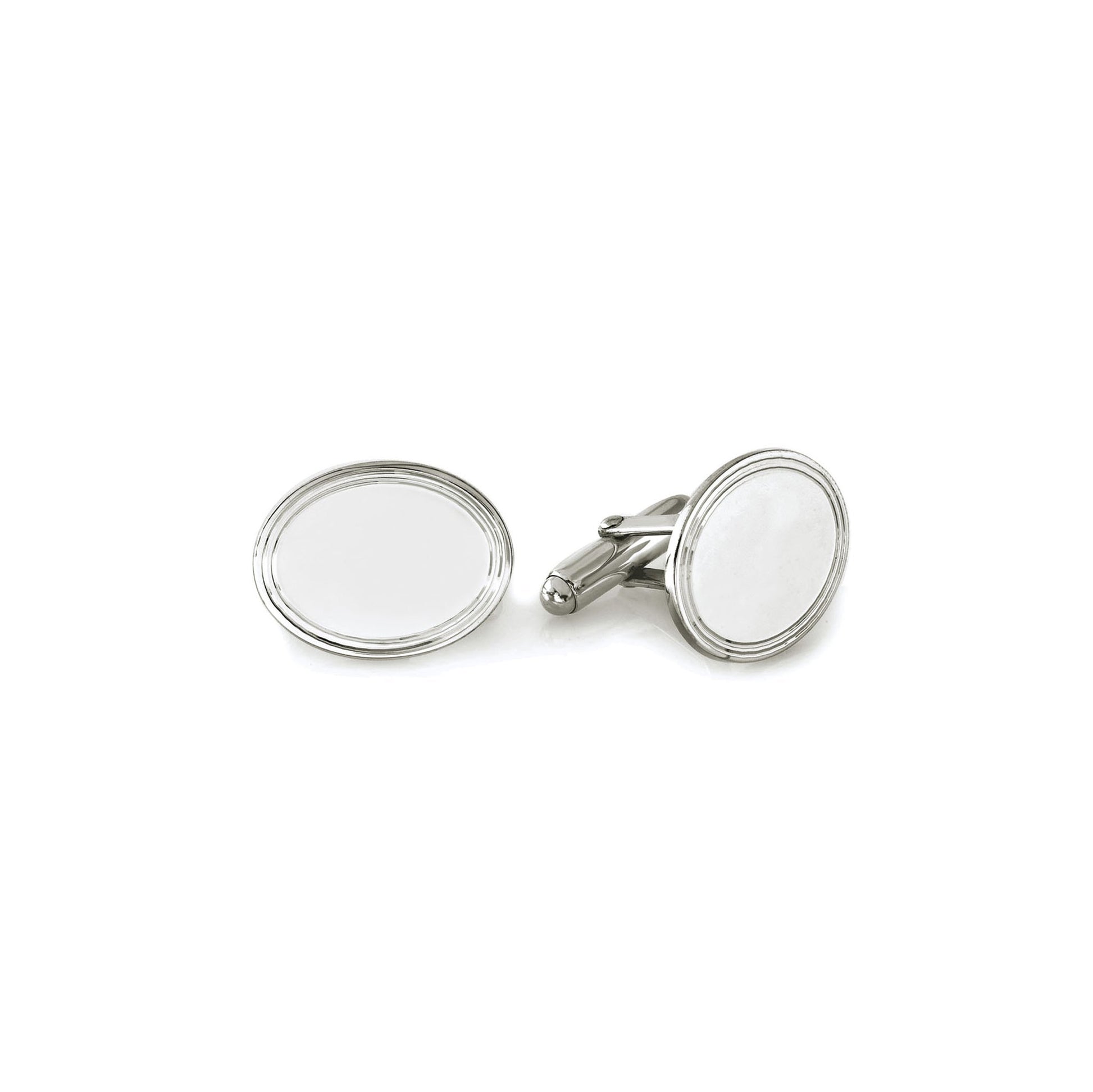 Sterling Silver Oval Polished Cufflinks with Engine-Turned Border