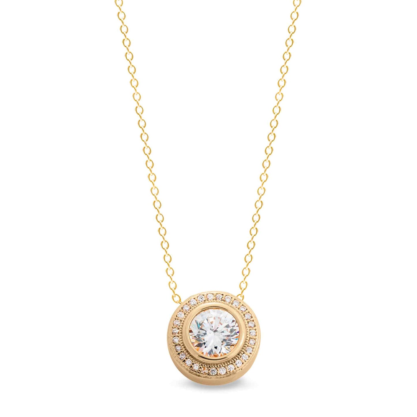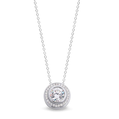 Sterling Silver Round Necklace with 28 Simulated Diamonds