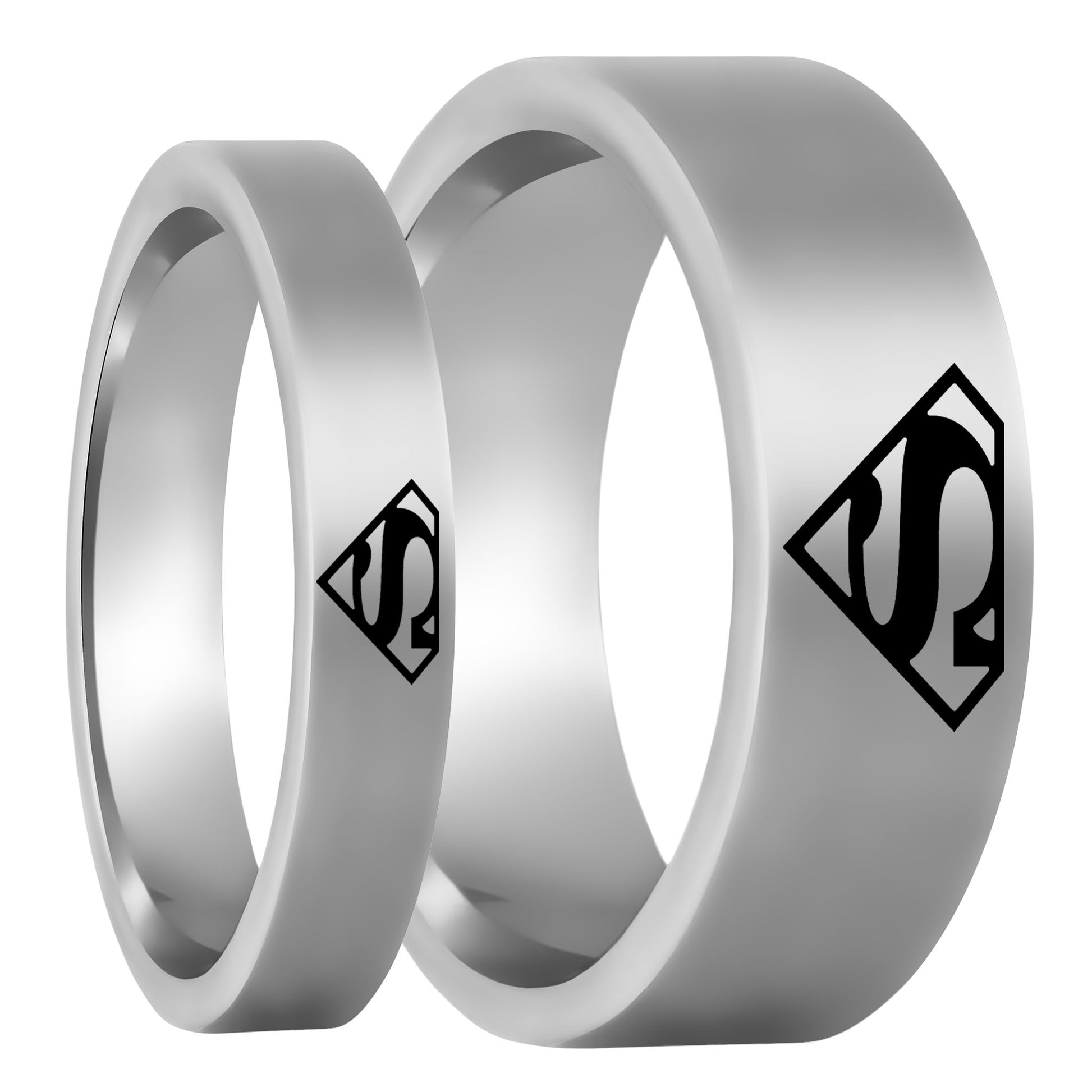 This superman tungsten couple's matching wedding band set is perfect for symbolizing the strength and beauty of your love. Crafted from the strongest metal around, these bands are strong enough to last a lifetime. The set of two matching bands feature a brushed finished with a belt-style border for a vintage look with a modern touch. Both rings are accented with the iconic Superman logo for a look that's undeniably unconventional. Available in a range of sizes for a perfect fit, this couple's wedding band set is ideal for those seeking an unconventional and irreplaceable symbol of their love. Start your happily ever after with this distinctive matching wedding band set. These rings will be a constant reminder of the strength, resilience, and love you share as a couple.