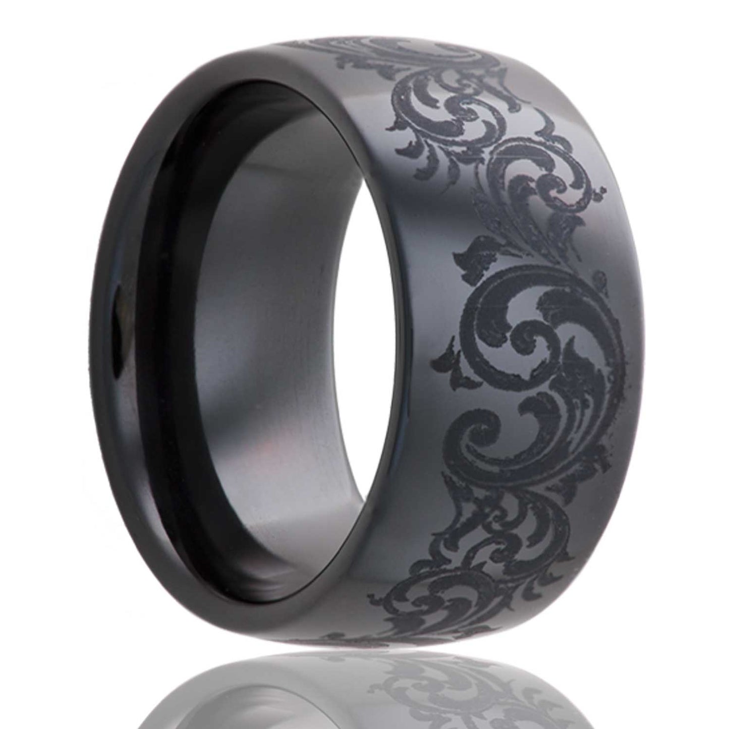 Swirl Pattern Domed Black Ceramic Wedding Band