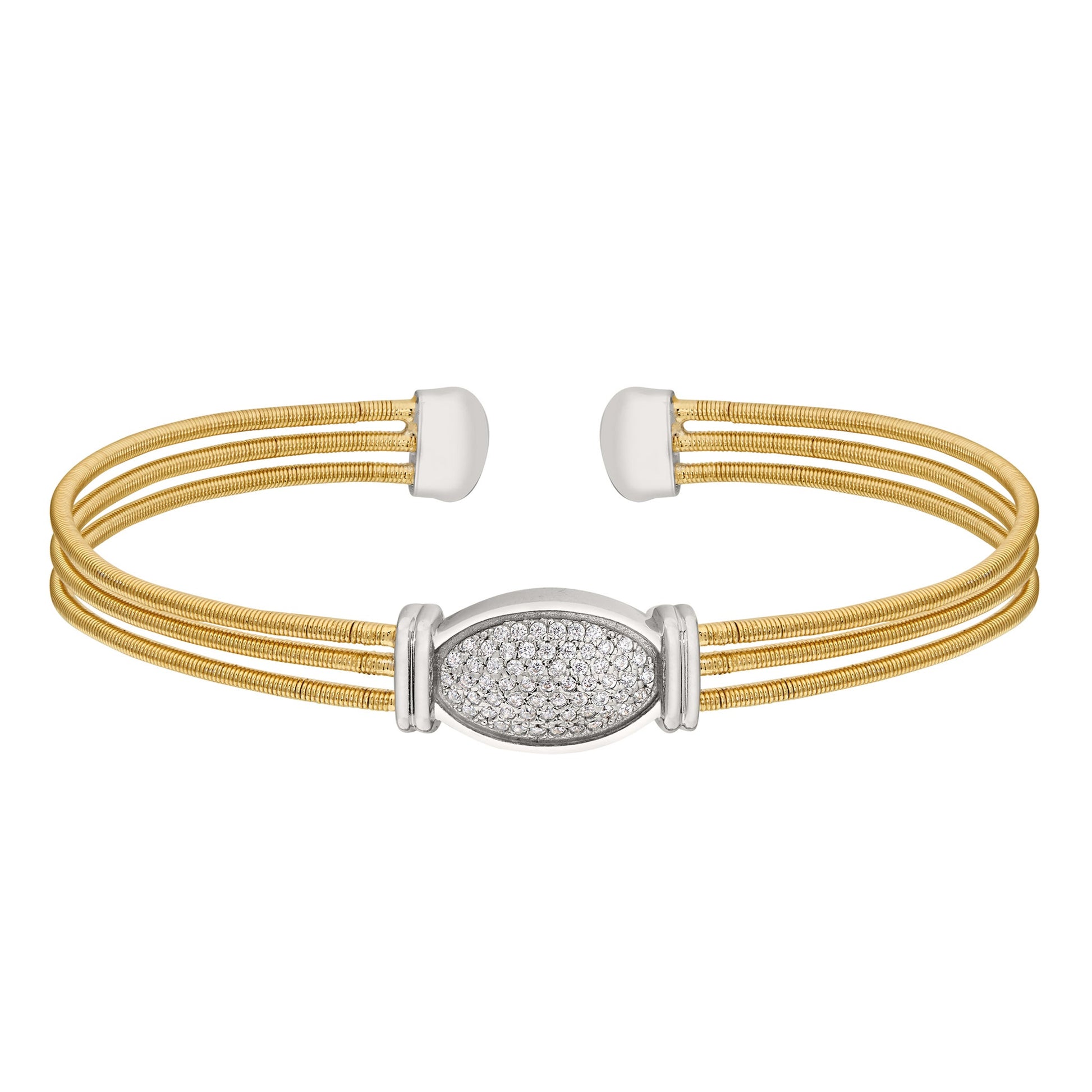 Three Cable Bracelet with Simulated Diamond Oval
