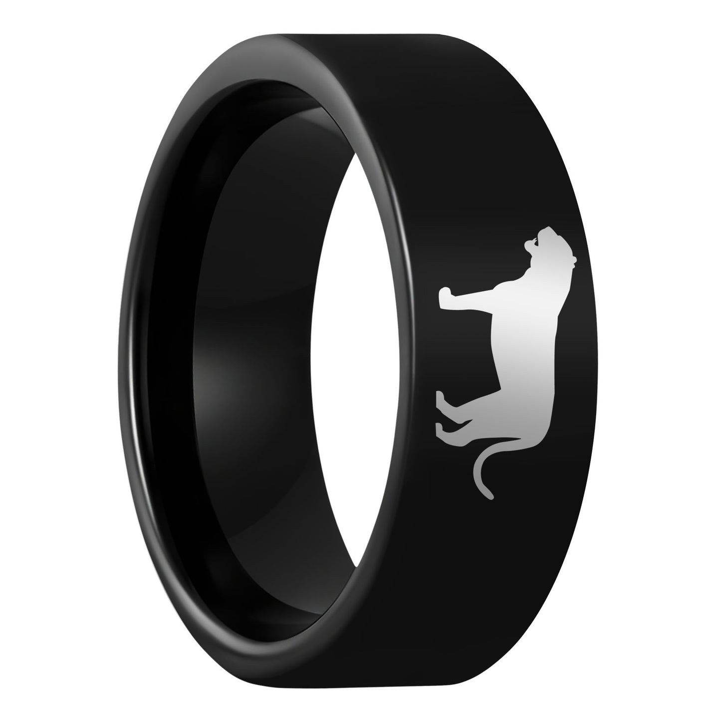 If you're looking for a ring that oozes masculinity and dominance, look no further. This handsome black tungsten ring has engravings of the beautiful yet fierce big cat, the tiger. As a spirit animal, the tiger is said to have courage, exceptional strength, and willpower. This ring will always serve as a constant reminder that you are a marvelous and powerful man who was determined to go for what he wanted and got it. For the confident, handsome, curious, fashionable, and discerning groom, this splendid piece is an accurate representation of your admirable personality. The flat band and comfort finish make it perfect for the groom, who has found his missing rib and is willing to defend her at all costs. Crafted from a metal that is durable, the ring has an excellent shine and is resistant to corrosion and tarnish, making it the perfect family heirloom. If you have an exquisite sense of style, this wedding band was specially crafted for you.