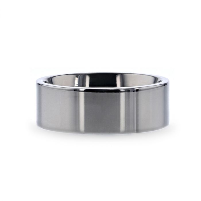 Choose a modern blend of contemporary titanium metal combined with a sleek, classic style ring that is as sporty as it is masculine. This polished titanium wedding band will bring loving and cherished memories all the days of your life. The flat style has been chosen with care to keep it out of the way and still looking great. Order yours now to experience the exceptional light weight and comfort of this titanium wedding band.