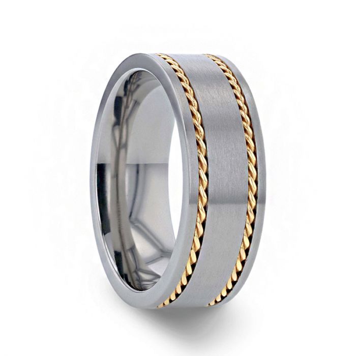 Titanium Men's Wedding Band with 14k Braided Gold Inlays
