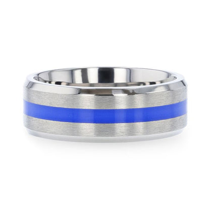 Titanium Men's Wedding Band with Blue Stripe