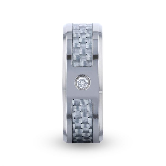 Titanium Men's Wedding Band with Gray Carbon Fiber Inlay & Diamond