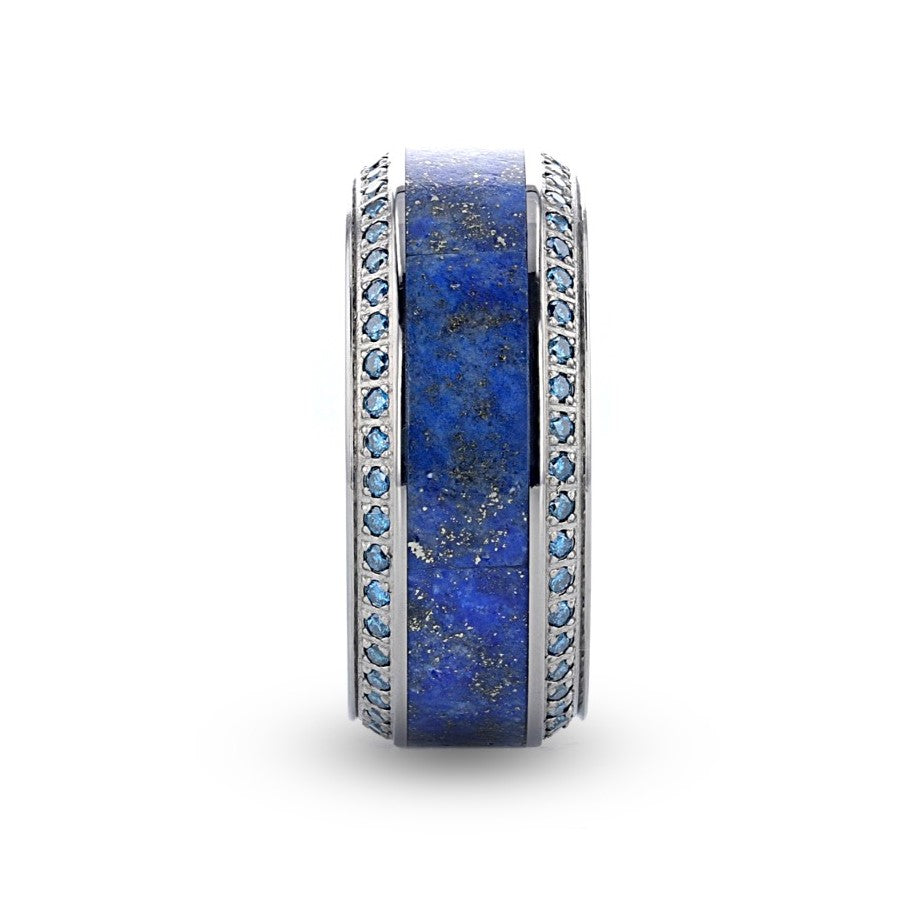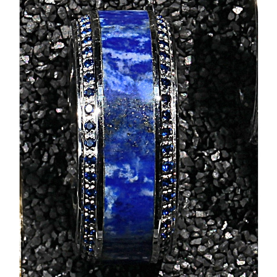 Titanium Men's Wedding Band with Lapis Lazuli Inlay & Blue Diamonds