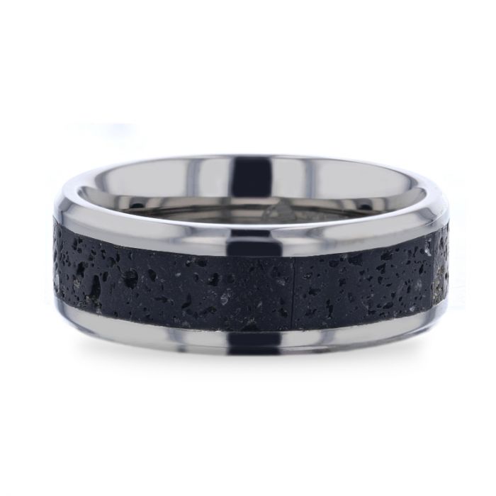 Titanium Men's Wedding Band with Lava Rock Inlay