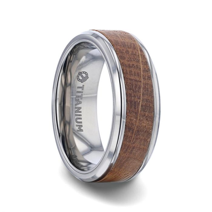 Titanium Men's Wedding Band with Whiskey Barrel Wood Inlay