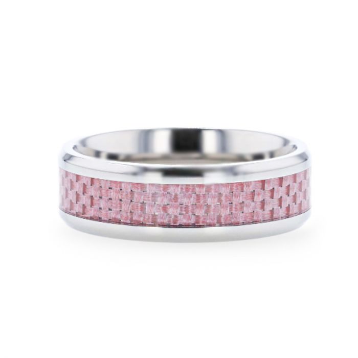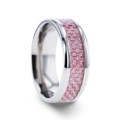 Titanium Wedding Band with Pink Carbon Fiber Inlay