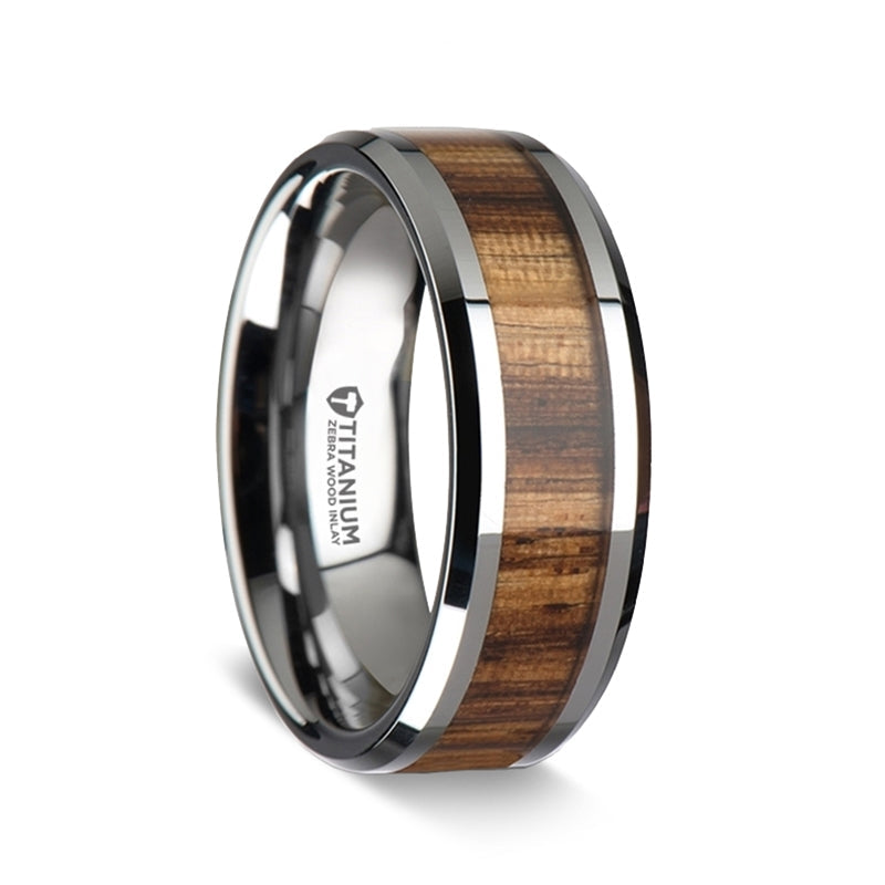 Titanium Wedding Band with Zebra Wood Inlay