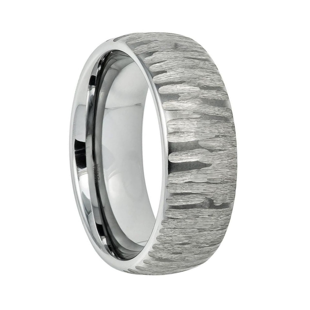 Get ready to say "I do" in style with our Tree Bark Tungsten Men's Wedding Band! Crafted from high-quality tungsten, this ring is designed to last a lifetime while remaining affordable. The unique texture of the tree bark pattern adds a touch of natural beauty to your special day, while the sturdy construction ensures that the ring can withstand even the toughest wear. Looking for a wedding band that will stand out from the rest? Our Tree Bark Tungsten Men's Wedding Band is the perfect choice! With its rugged and masculine design, it's sure to make a statement on your big day. And if you're looking for a gift for your groomsmen, this ring is a great option that they'll love and appreciate for years to come. So why settle for an ordinary wedding band when you can have something truly unique? Invest in our Tree Bark Tungsten Men's Wedding Band and make your special day even more memorable.