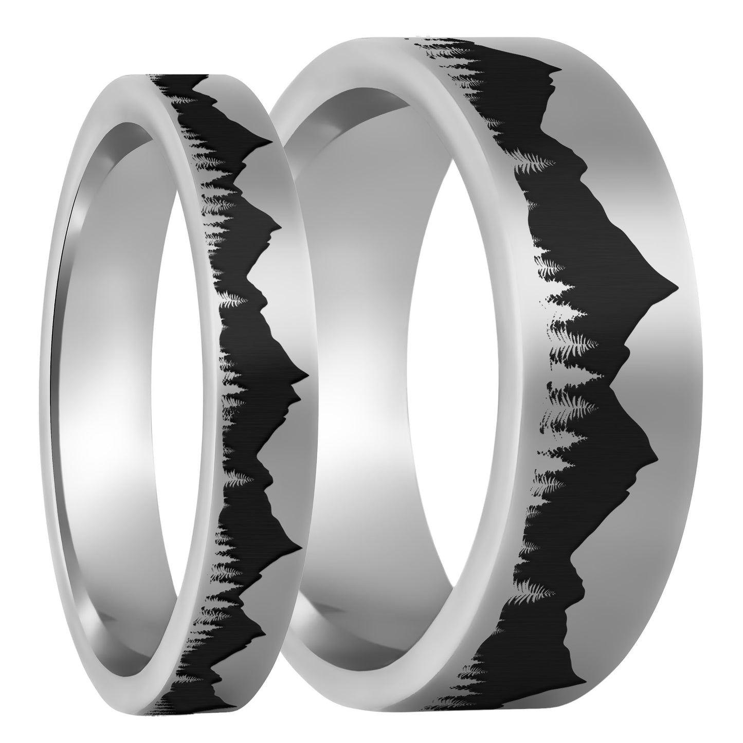 Treeline Mountains Tungsten Couple's Matching Wedding Band Set