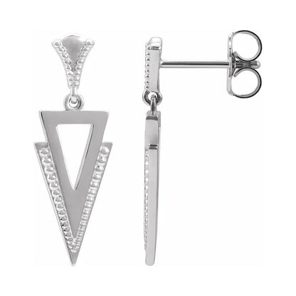 Wow, these triangle geometric sterling silver earrings are just the perfect combination of style and sophistication! With their unique and eye-catching design, these earrings are sure to add a touch of elegance to any outfit. Crafted from high-quality sterling silver, they are both durable and stylish. Whether you're dressing up for a night out or simply running errands, these earrings will become your go-to accessory. They are lightweight, comfortable to wear, and is within budget. Plus, they make a great gift for anyone who loves jewelry! Perfect for birthdays, holidays, or even just because. Don't settle for boring earrings when you can add some flair to your collection with these triangle geometric sterling silver earrings. Get yours today and elevate your style game.