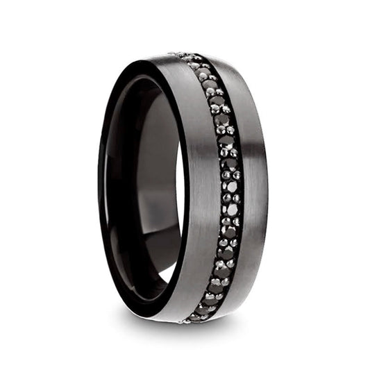 Black Titanium Men's Wedding Band with Rose Gold Edges & Black Sapphires