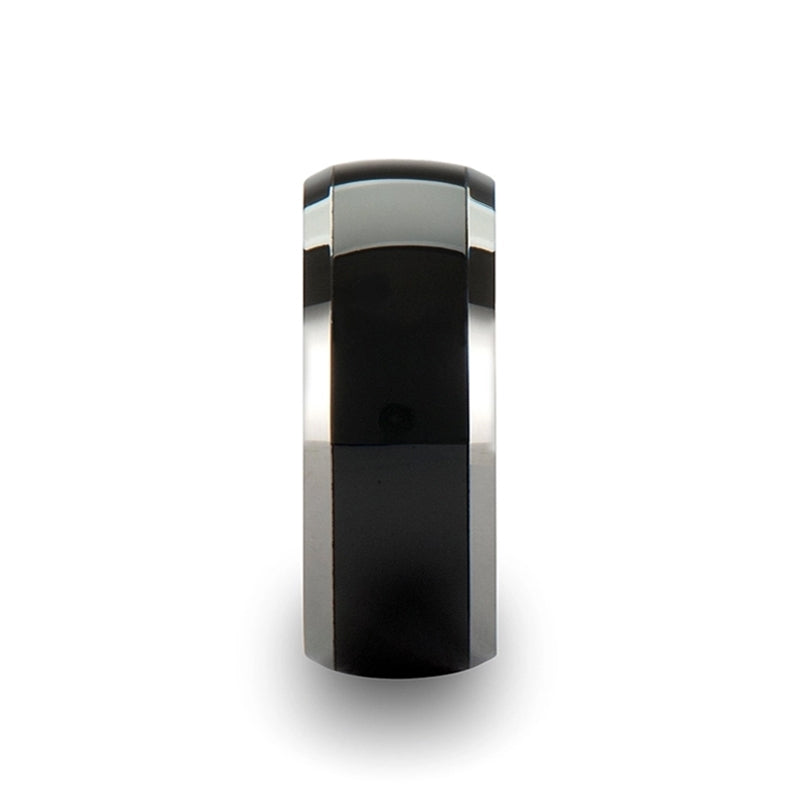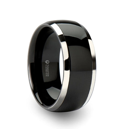 Tungsten Inlaid Black Ceramic Men's Wedding Band