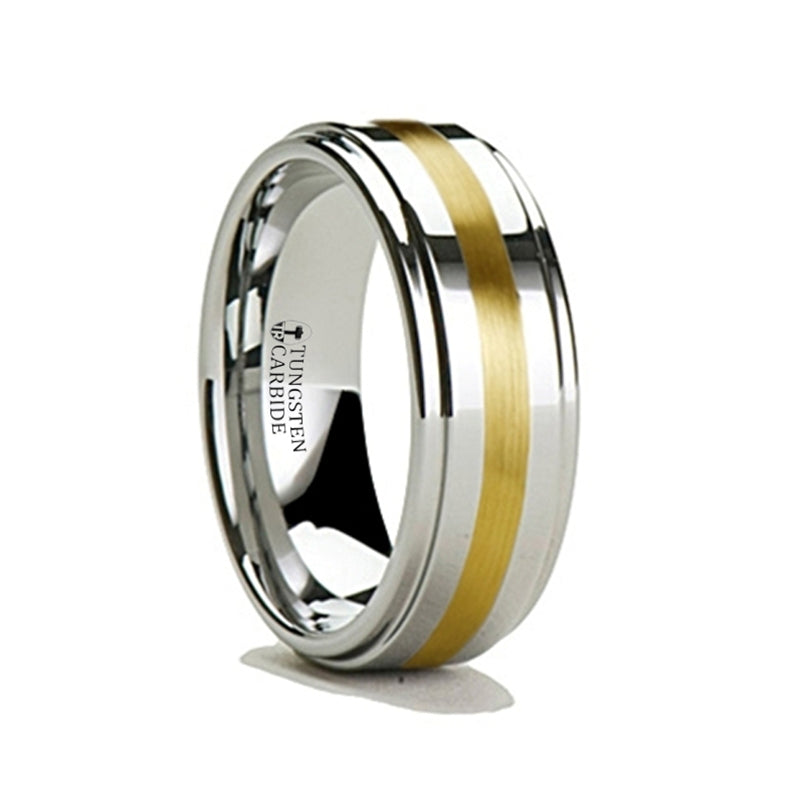Tungsten Men's Wedding Band with 14k Yellow Gold Inlay