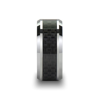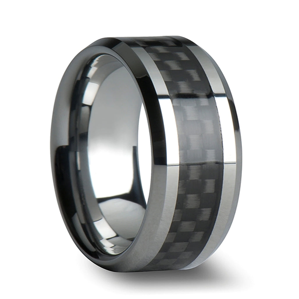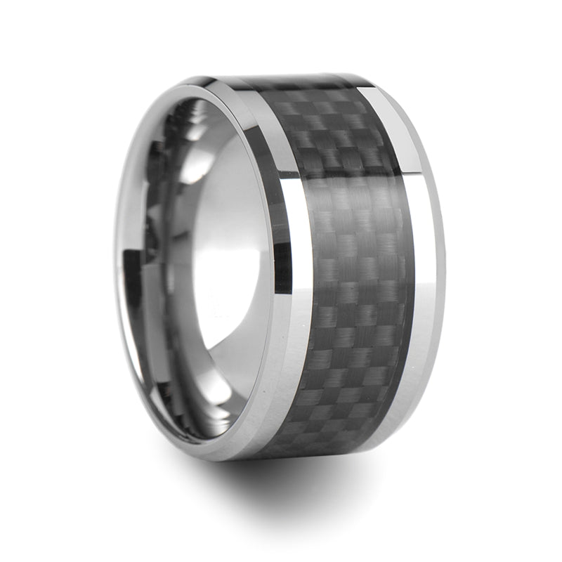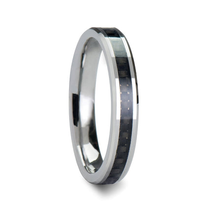 Tungsten Men's Wedding Band with Black Carbon Fiber Inlay
