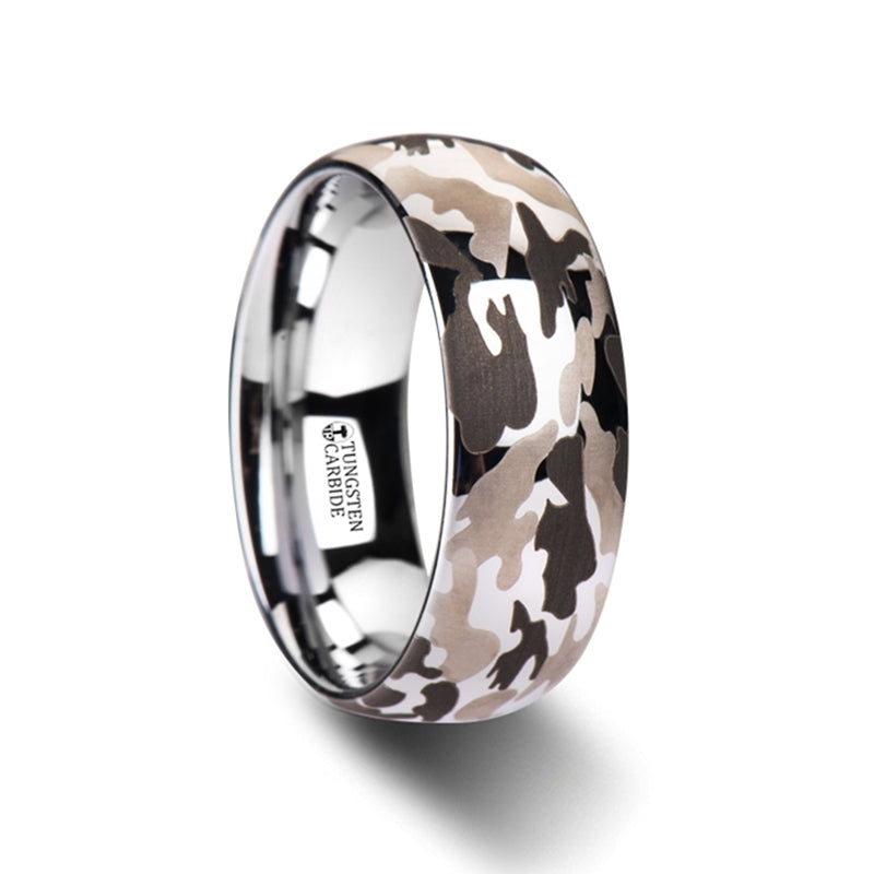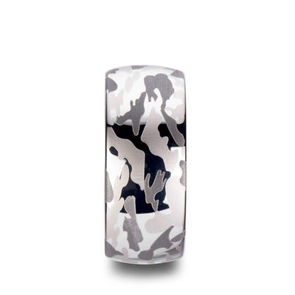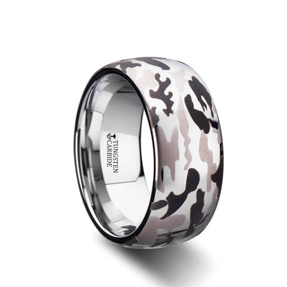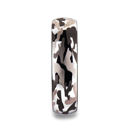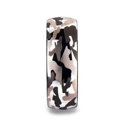 Tungsten Men's Wedding Band with Black & Gray Camoflauge Pattern