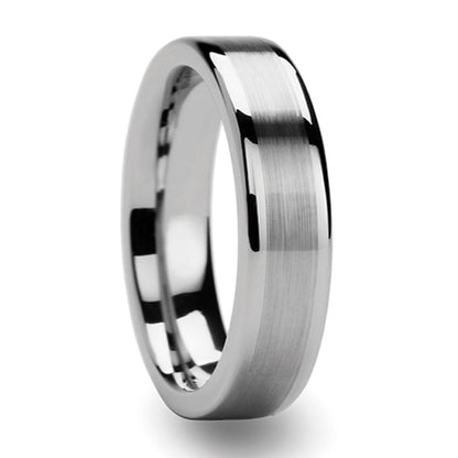 Some things are made to last, the sky above, the ground below. But when your footing feels as though it will falter, and the sky is full of clouds. When you don't quite seem to know where you belong in the world, we hope you find this beautiful flat Tungsten carbide ring on your finger and suddenly feel that balance. Take a deep breath and know that you are exactly where you need to be. With the one you love, fulfilling your hearts desires with theirs instinctively in mind. What you've found is a promise for all of the beauty and abundance life with another can lead to. May the brushed strip struck through the center of this brilliant band remind you that on the darkest of days as well as the brightest you've found the heart that turns yours to a champion, and together, love conquers all.