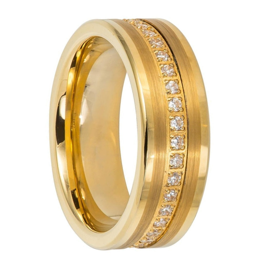 Eternity Cubic Zirconia Gold Tungsten Men's Wedding Band
