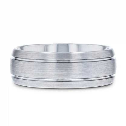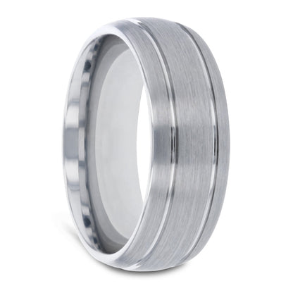 Graceful and attractive all at the same time, the pinnacle of this piece is its bold and elaborate modern lines. This exquisite masterpiece strikes the right notes in minimalism, sophistication and style. The dignified dual grooves lend specific character to this piece and the wearer. Fetching, refined and stylish, this band will brilliantly mark your special day with poise and gusto. Your outfits and personality will no doubt merge effortlessly with this addition. Softly balanced and spectacularly brilliant, this wedding ring is best suited for a groom who continuously dazzles his beloved every time she sets her eyes on him.
