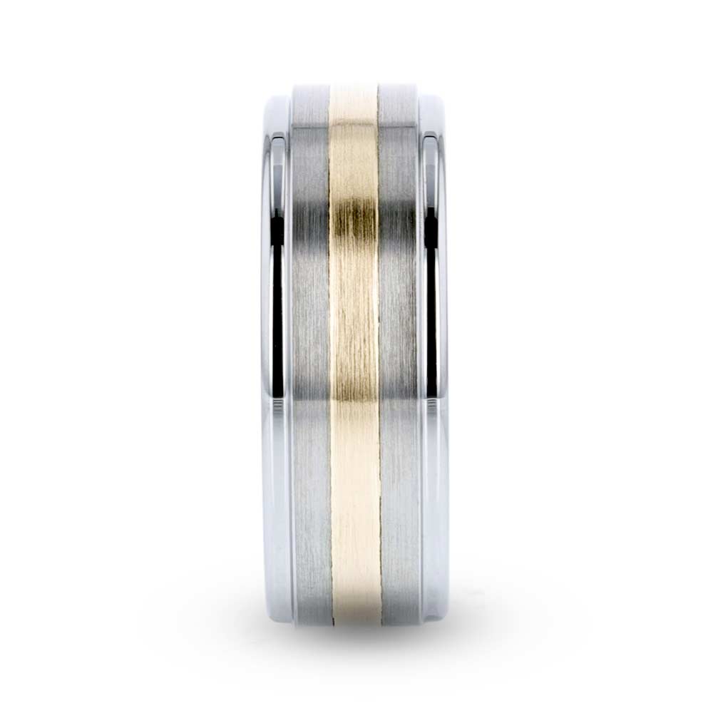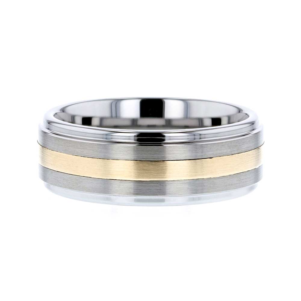 - Material: Tungsten carbide & 18k Yellow Gold Inlay