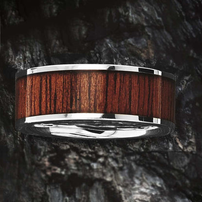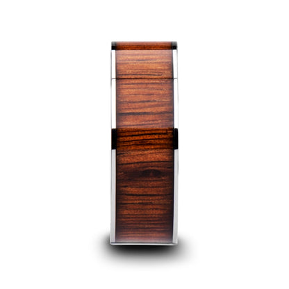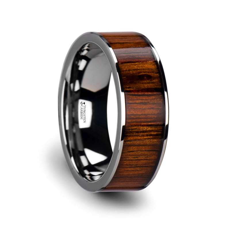 Tungsten Men's Wedding Band with Mahogany Wood Inlay